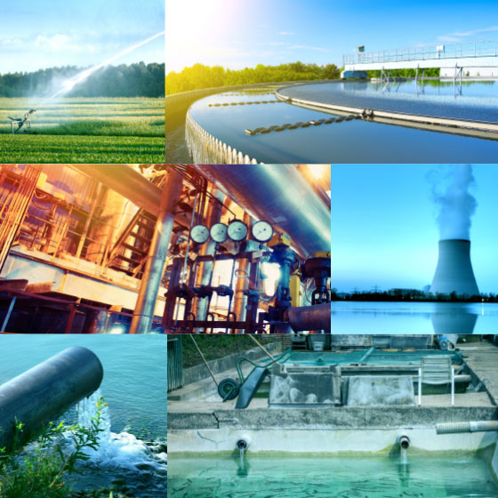 - Installations et tours de refroidissement - Fabrication sans germes dans l'industrie alimentaire - Systèmes d'irrigation sans bactéries, virus, algues - Étape de désinfection dans les stations d'épuration - Pisciculture et élevage - Traitement de l'eau potable
