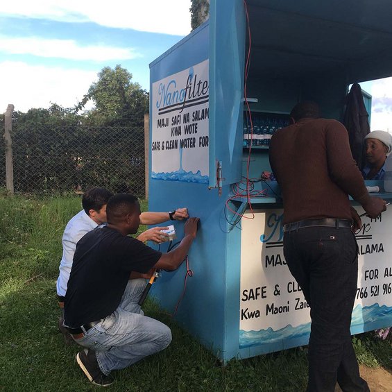 In 7 Kiosken haben Salome Dreessen und Thomas Neumann im Oktober und November 2018 die PURE D installiert, um das gefilterte Wasser abschließend zu desinfizieren. Damit wird das Wasser von bakteriellen und viralen Krankheitserregern, wie Vibrio Cholerae (Cholera) und dem Norovirus befreit, bevor es in Flaschen abgefüllt wird. Um die autarke Funktion der Kioske beizubehalten, wird die Energieversorgung der PURE D mit einer kleinem kleinen PV-Modul ermögliche. Das Projekt wird 2019 fortgeführt, weitere Kioske werden mit PURE D und Solarenergie ausgestattet.